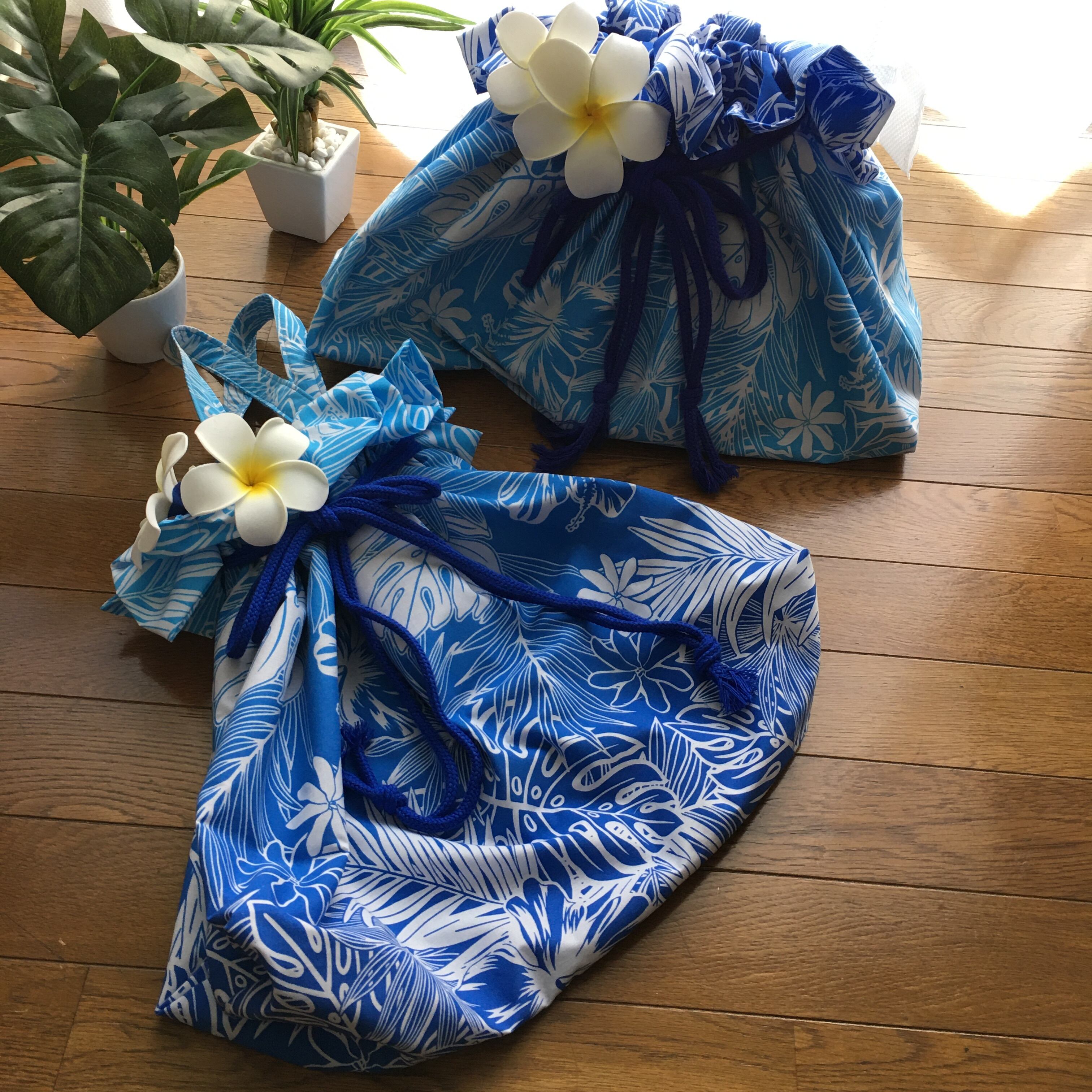 幅48㎝+マチ15㎝、縦30㎝の大容量でファスナー内ポケット付のハワイアン巾着です。